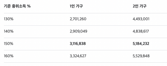 서울시 청년수당 기준 중위소득 150% 이하인 자